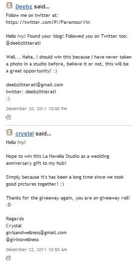 Ivy Veronique: Results: La Novella Studio Giveaway